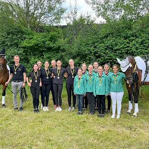 🥇 Gold ging an das Team RFV Krumbach, das mit ihrer Longenführerin Selina Schröder und dem Pferd Sacarron CH eine herausragende Leistung zeigte und sich den Landesmeistertitel sicherte.