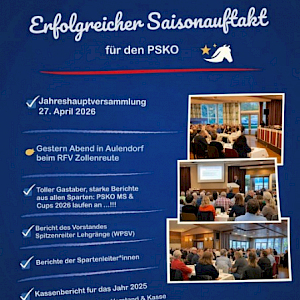 Der PSK Oberschwaben bedankt sich herzlich beim RFV Zollenreute für die hervorragende Ausrichtung der Versammlung, bei Eddy Stöferle für die wertvolle Unterstützung aus Verbandssicht sowie bei allen Teilnehmenden für ihr Engagement, ihre Beiträge und den gemeinsamen Blick nach vorne. Tollte Saison und Vorfreue in Sachen PSKO-Ball beim RFV Wolfegg!
