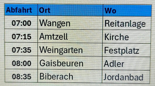 🚌 Gemeinsame Busfahrt – Abfahrtsplan