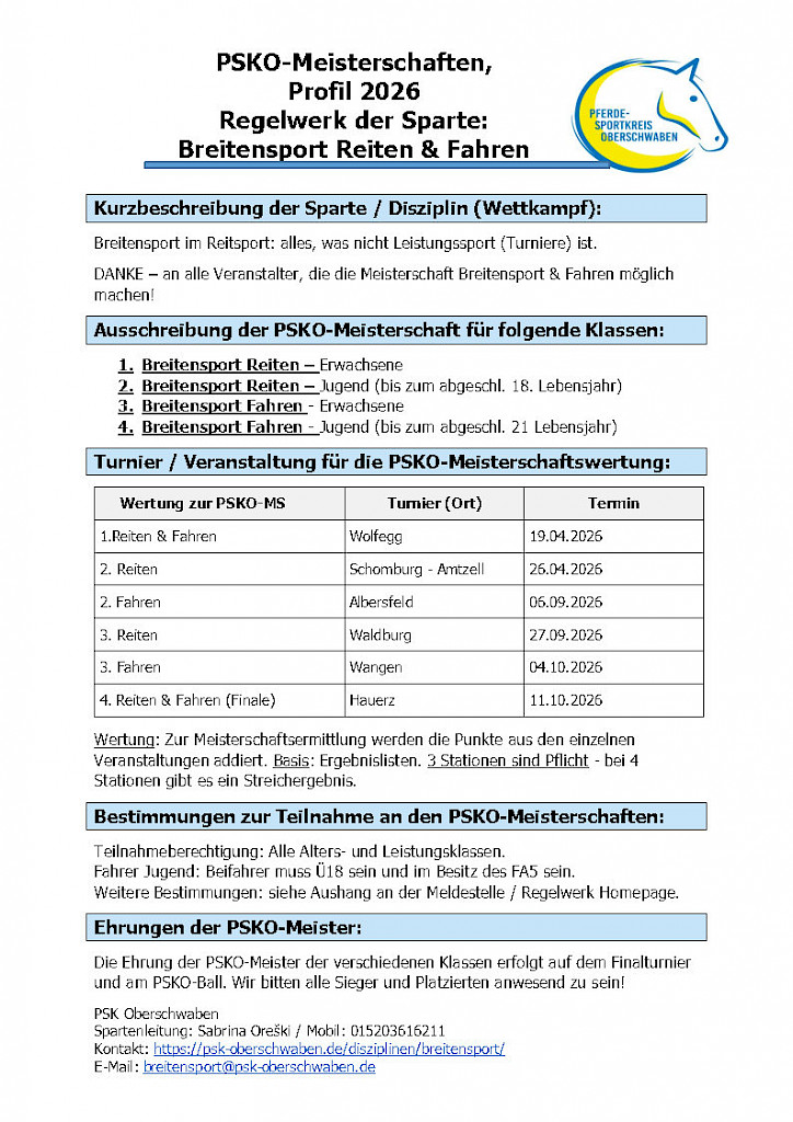 🎯 Jetzt anmelden und dabei sein! Kommt vorbei, bringt eure Pferde und gute Laune mit – wir freuen uns auf euch! #Breitensport #PSKOberschwaben #Orientierungsritt #Pferdesport #Wolfegg #Teamgeist #NaturPur #Reiten #Fahren #PSKOCup2026 Ort: Anhänge: |