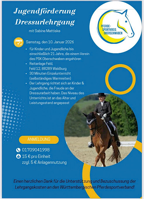 🌟 PSKO-Jugendförderlehrgang Dressur mit Sabine Mattiske – Sei dabei! 🎉