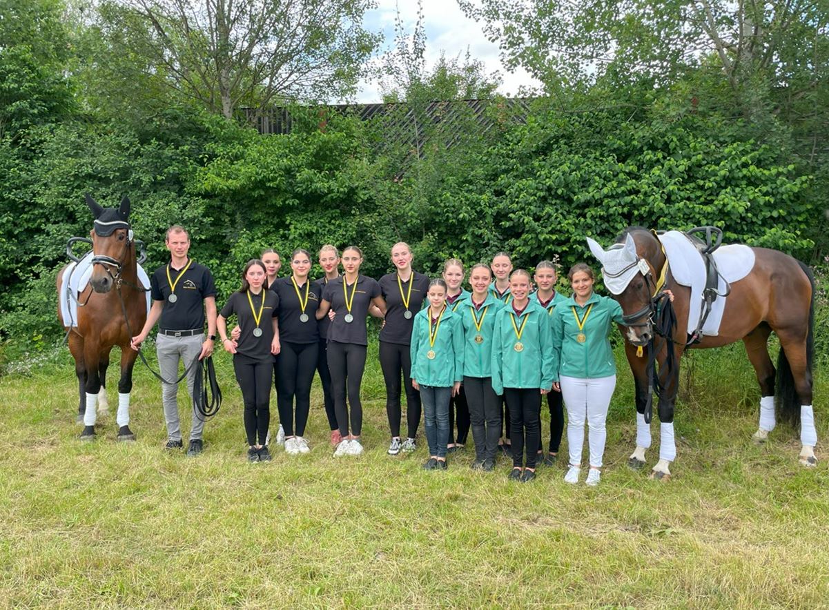 🥇 Gold ging an das Team RFV Krumbach, das mit ihrer Longenführerin Selina Schröder und dem Pferd Sacarron CH eine herausragende Leistung zeigte und sich den Landesmeistertitel sicherte.