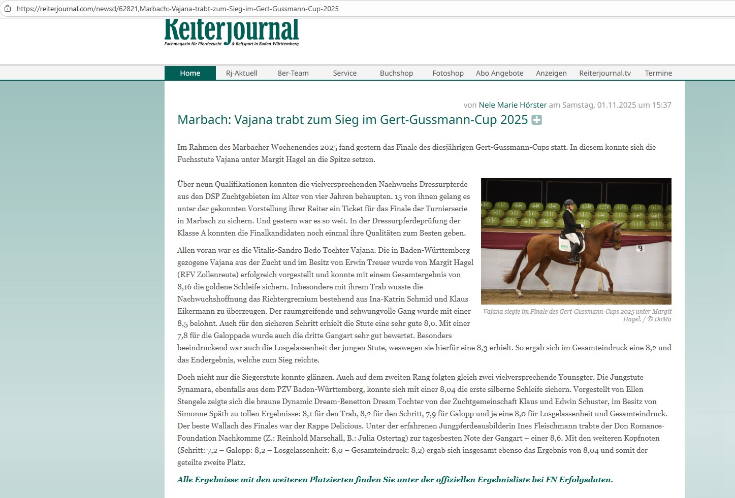 Vajana glänzt im Finale des Gert-Gussmann-Cups 2025 in Marbach! Gefolgt von Synamara & Delicious...