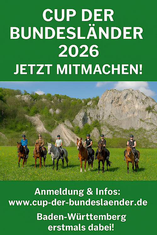 Friedrichshafen/Baden-Württemberg, 4. Februar 2026 – Deutschlands wohl naturverbundenste Pferde-Aktion geht in eine neue Runde: Der Cup der Bundesländer 2026 steht in den Startlöchern – und Baden‑Württemberg ist in diesem Jahr zum ersten Mal mit dabei! Unterstützt vom Pferdesportverband Baden‑Württemberg schließen sich direkt 100 motivierte Pferdefreunde an, um gemeinsam mit Reiterinnen und Reitern, Säumern und Kutschfahrern aus insgesamt acht Bundesländern ein starkes Zeichen für den Freizeitpferdesport zu setzen.