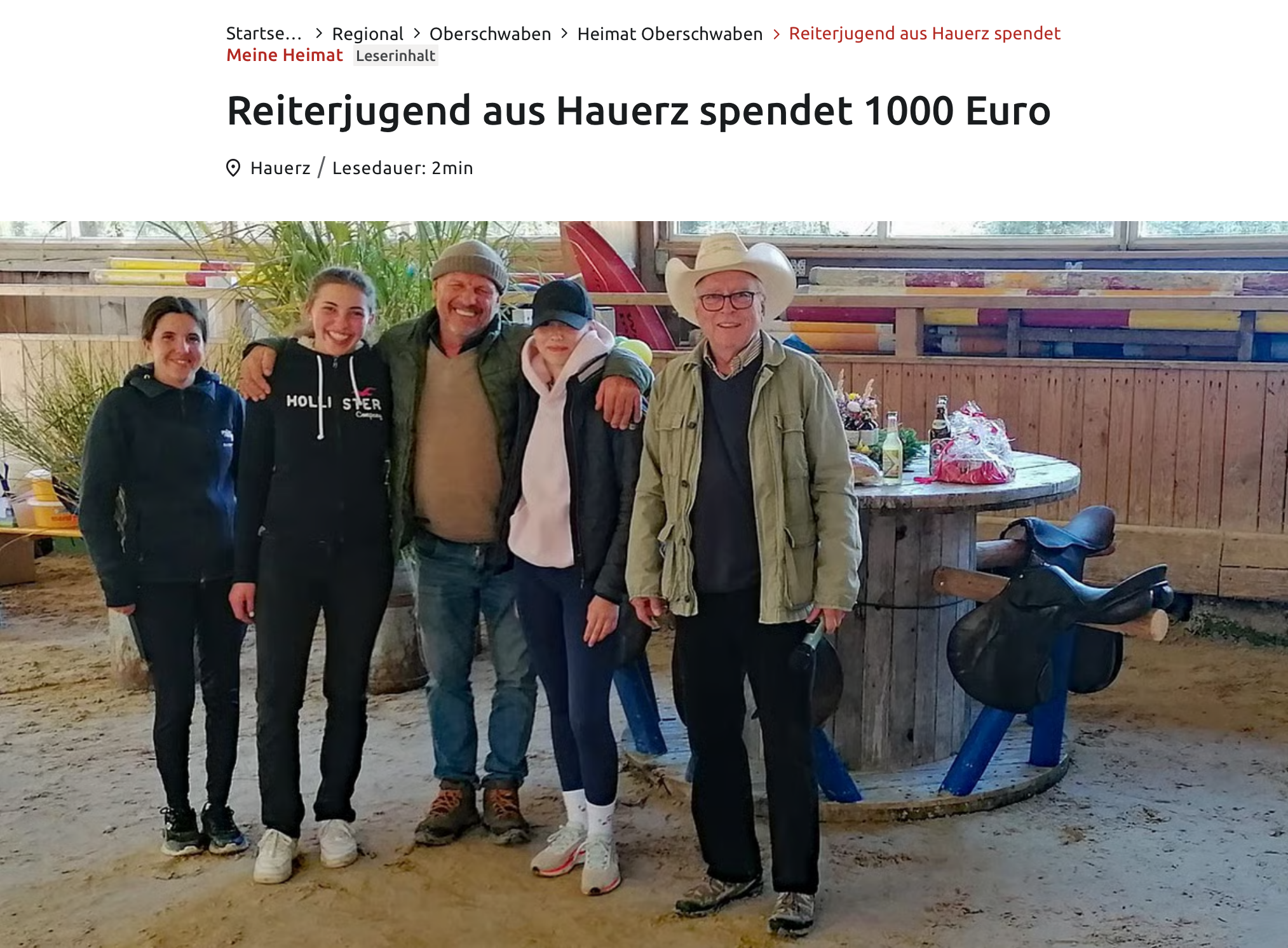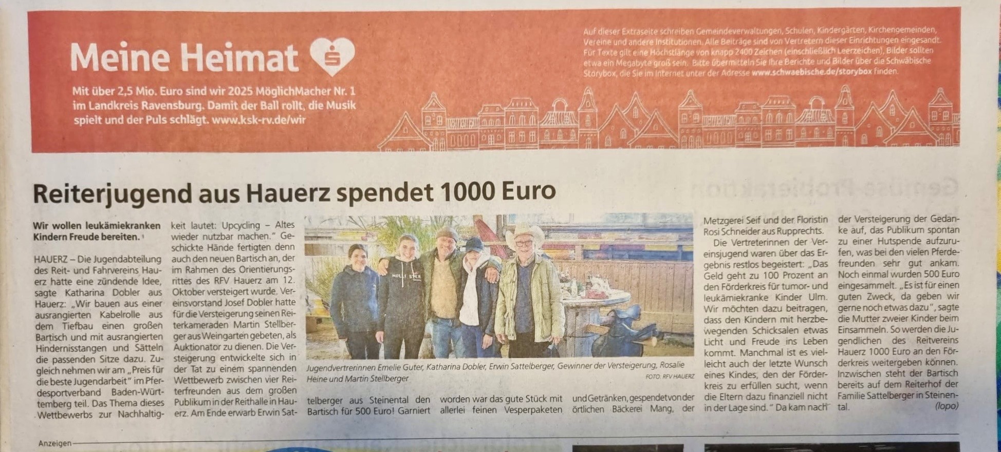 Reiterjugend aus Hauerz spendet 1000 € für guten Zweck 🐴