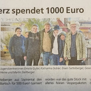Foto v.l.n.r.): Jugendvertrerinnen Emelie Guter, Katharina Dobler, Erwin Sattelberger, Gewinner der Versteigerung, Rosalie Heine und Martin Stellberger