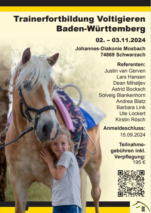 auch in diesem Jahr findet wieder die Trainerfortbildung Voltigieren Baden-Württemberg statt – organisiert vom Pferdesportverband BW.