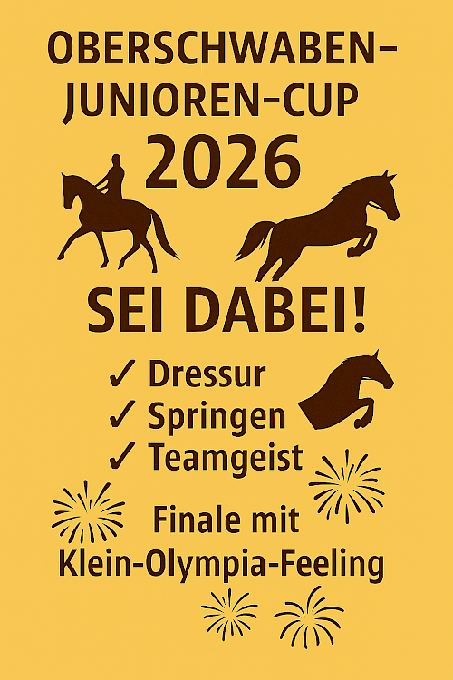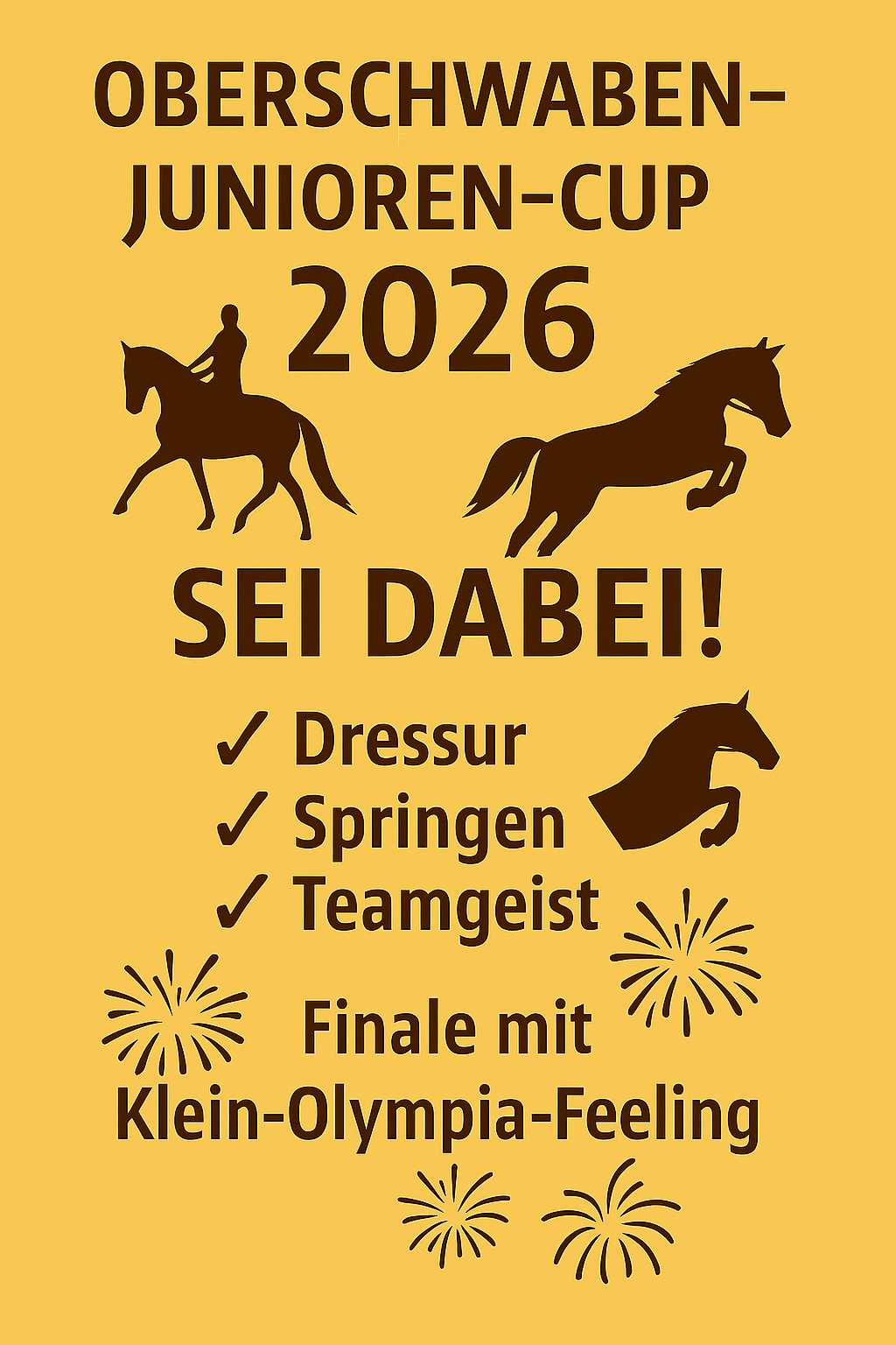 Der Pferdesportkreis Oberschwaben lädt alle jungen Reiterinnen und Reiter herzlich ein, beim Junioren‑Cup 2026 an den Start zu gehen!