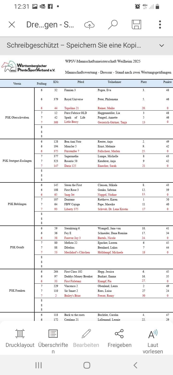 🥇 Dressur-Team: Gold für PSK Oberschwaben – 270 Punkte!