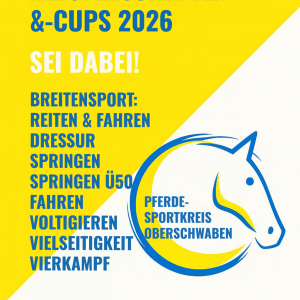 Der Pferdesportkreis Oberschwaben lädt alle jungen & junggebliebenen Sportlerinnen & Sportler sowie ihre Pferde herzlich ein, bei den PSKO MS & ‑Cups 2026 an den Start zu gehen!