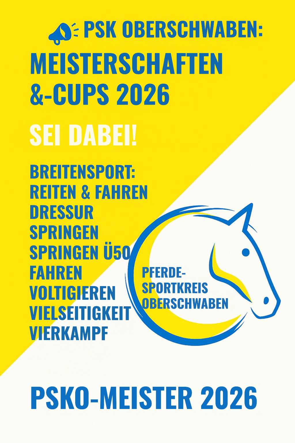 Breitensport: Reiten & Fahren • Dressur • Springen • Springen-Ü50 • Fahren • Voltigieren • Vielseitigkeit • Vierkampf • Teamgeist • PSKO-Meister 2026
