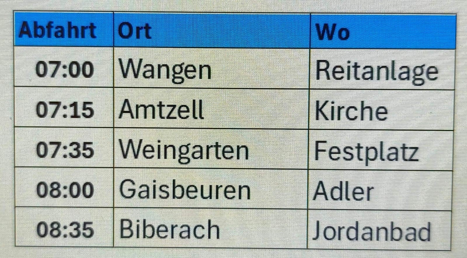 🚌 Gemeinsame Busfahrt – Abfahrtsplan