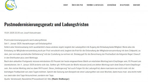 Nach dem aktuellen Postgesetz müssen mindestens 80 Prozent der heute eingeworfenen Briefe am nächsten Werktag beim Empfänger sein, 95 Prozent am übernächsten. Am 1. Januar 2025 änderte sich das. Seither gilt: 95 Prozent der Briefe müssen (erst) am dritten Werktag nach dem Einwurf beim Empfänger sein. Am vierten Werktag sind es dann 99 Prozent. Diese „Verlängerung“ hat auch Folgen für die Ladungsfrist, denn man kann nun nicht mehr mit der bisherigen Postlaufzeit von zwei Tagen rechnen. Spricht die Satzung zum Beispiel von einer Ladungsfrist von zwei Wochen, dann muss man also nicht mehr nur zwei oder drei Tage hinzurechnen, sondern vier Tage.